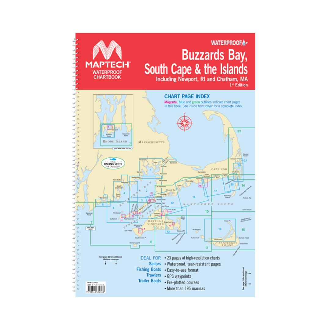 Covers Buzzards Bay, Vineyard Sound, Nantucket Sound, Newport, RI, Chatham, MA and the Islands. 23 chart pages.