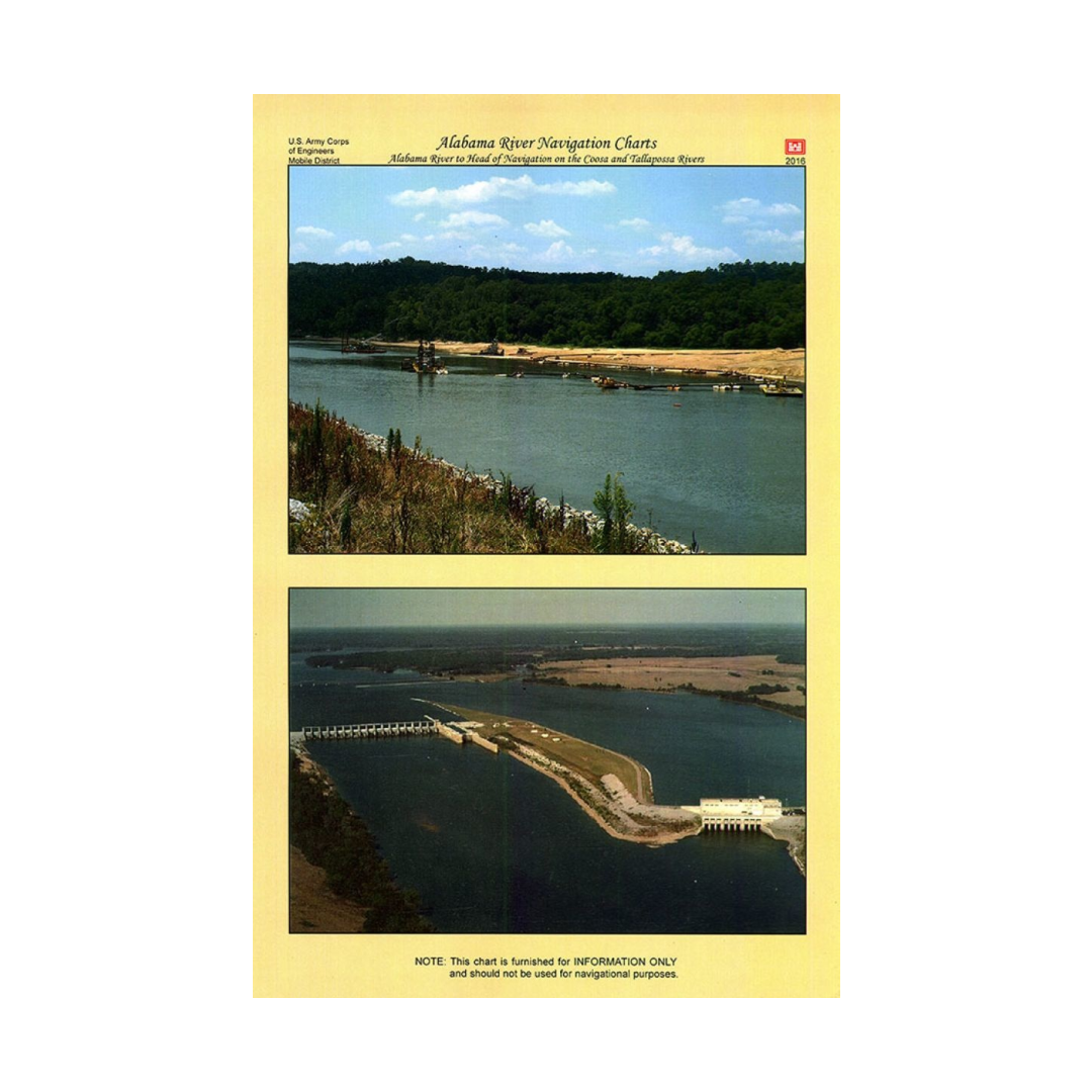 This paper navigational chart book covers the Alabama River from Mobile, AL to Montgomery, AL; Mile 0 to Mile 305. It was published in 2016 and is 11” x 17” in size.