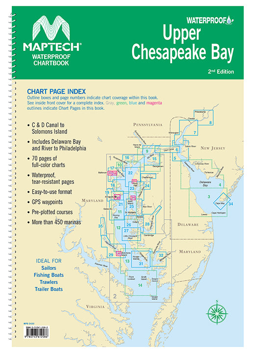 Covers C&D Canal to Solomons Island and includes Delaware Bay and River to Philadelphia. Offers full-color charts on waterproof, tear-resistant pages. Easy-to-use format includes GPS waypoints, pre-plotted courses and more than 350 marinas. 70 chart pages.