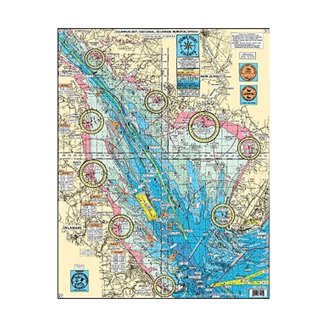 LOCAL KNOWLEDGE FISHING GROUNDS AND HOT SPOTS NOT FOUND ON OTHER CHARTS: Tussey's Slough, Joe's Tip, Top of the Hill, The Valley, Errickson's Steaks, Punk Grounds, Horseshoe, Pin Top, 60' Slough, Tussey's South Tip, 20' Slough, Little Egypt,PLUS Fishing Creek Shoal, Round Shoal, Overfalls Shoal, Prissy Wicks, The Valley, McCries Shoal, Crow Shoal, Hawk's Nest Shoal, Crossover Grounds, The Anchorage, Old Bare Shoal, Broadkill Slough, Joe Flogger Shoal, The Lower Middle, Blake Channel, Cedarbush Hole, C&B, Peanut, New Jersey Delaware State Line