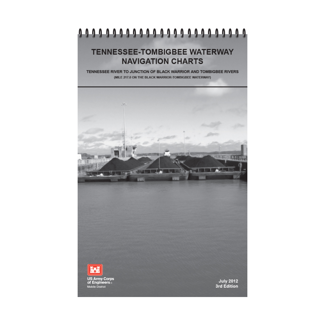 This paper navigational chart book covers the Tennessee-Tombigbee Waterway from the Tennessee River (Pickwick Lake) to Junction on the Black Warrior-Tombigbee Waterway (Demopolis, AL); Mile 450 to Mile 217. It was published in 2012 and is 11” x 17” in size.