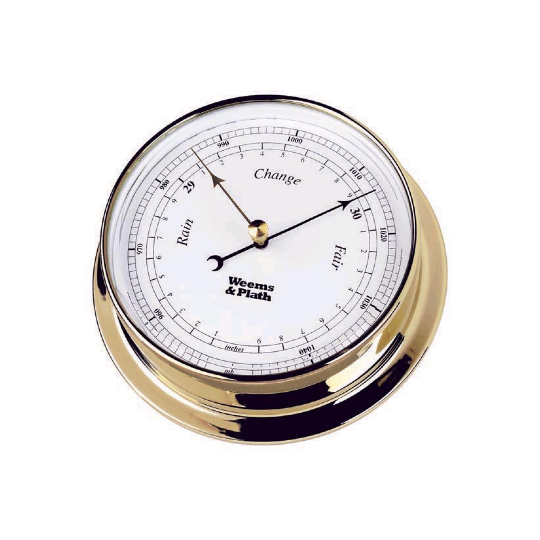 The easy-to-read dial, maintenance-free finish, and weatherproof construction, are a winning combination in this generously sized brass Endurance 125 Barometer. This barometer houses a temperature compensated, fully adjustable, aneroid movement with inch and millibar scales. As part of the original Endurance Collection, it features an ultra-hard finish guaranteed to never tarnish. The patented Slide-n-Lock Mounting System allows for easy removal and eliminates the need for visible mounting screws. The Endurance 125 barometer is splash resistant and has a lifetime warranty on finish and movement.