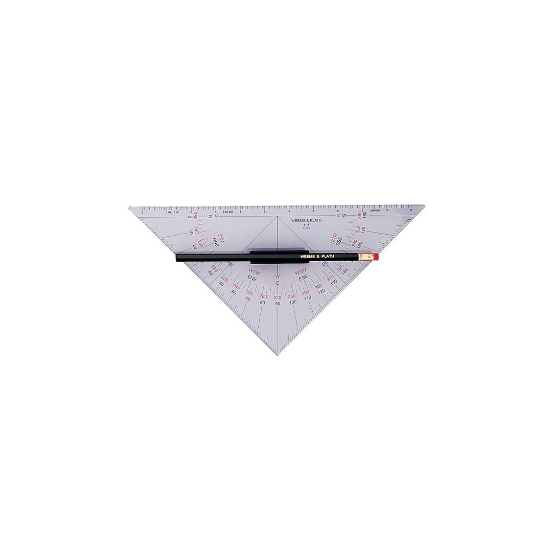 One of our best selling navigation instruments, the Protractor Triangle with Handle is inscribed with contrast enhancing colors making it easier to use. Utilizing two 45° triangles, the protractor triangle with handle provides a straightforward method of plotting and performing chart work. With its protractor scales, this protector triangle's handle is easily aligned in any direction with a chart meridian. Direction is maintained as one triangle is slid along the other to the desired position. The protractor triangle with handle is crafted of durable and clear vinylite.